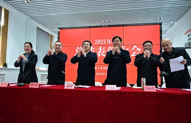 王献新书记在总结中指出,2021年出版社在中国轻工业联合会的正确领导下,以庆祝建党百年和加强管理体系建设为主题主线,坚持正确的出版方向,深化管理体系建设,推进图书和期刊业务改革,加强组织机构和干部队伍建设,较好地完成了各项年度工作目标。